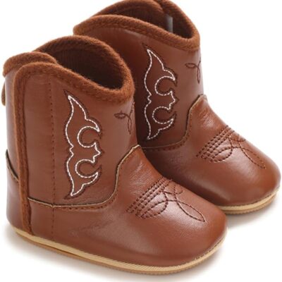 Valcatch Baby Girl Boy Western Cowboy Shoes Toddlers Snow Booties Newborn First Walking Shoes Baby Brown Prewalkers Age for 0-18 Months