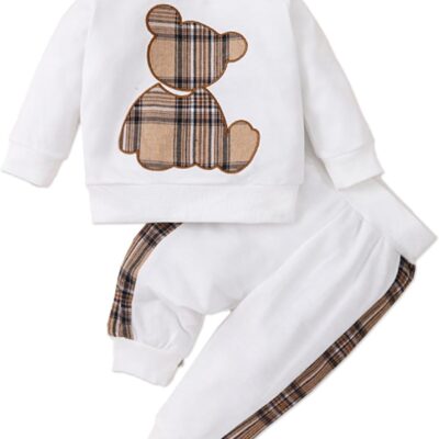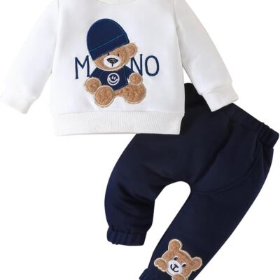 Similotey Baby Boy Clothes Bear Print Tops Long Sleeve + Bear Pants Outfit Set
