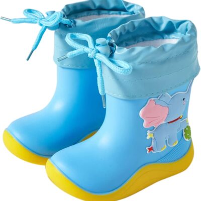 Mashaouyo Toddlers Children Rain Shoes Boys And Girls Water Shoes Elephant Cartoon Character Rain Shoes With Warm Bundle Muzzle Kid Boy