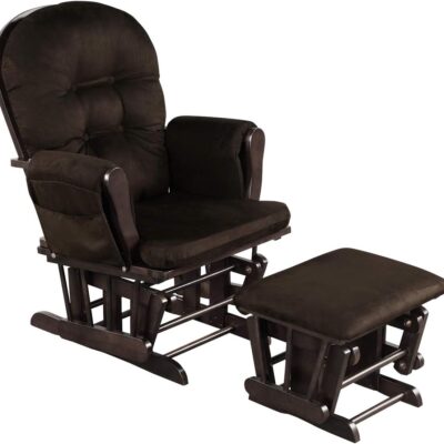Costzon Baby Glider and Ottoman Cushion Set, Wood Baby Rocker Nursery Furniture, Upholstered Comfort Nursery Chair & Ottoman with Padded Arms (Brown)
