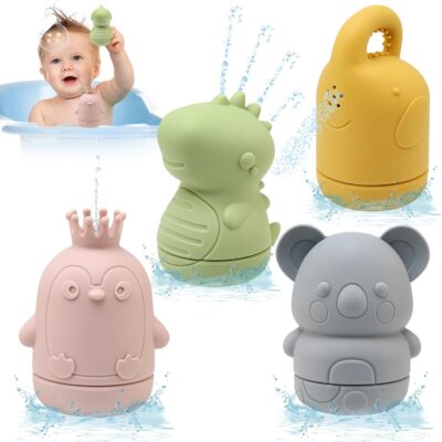 Ballery Baby Bath Toys, 4 Pcs Silicone Mold Free Bath Toys Toddler , Bath Toys Sensory Educational Toys for Kids, Bathtub Pool Beach Water Toys for Toddlers, Gift for 1 2 3+ Year Olds Boys Girls