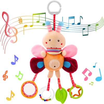 Baby Pram Pushchair Toys Newborn Sensory Toy for Babies Soft Plush Early Development Stroller Car Toys Hanging Activity Toy with Teether Clip on Pushchair Handbells Baby Rattles Toys for Girls Boys