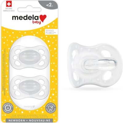 Medela Baby Pacifier | Newborn 0-2 Months | 2-Pack | Includes sterilizing case | Silicone- and BPA-Free | Supports Natural Suckling | Clear