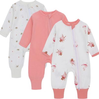amo nenes 3 Pack Newborn Baby Boys Girls Romper, One Piece Cotton Jumpsuit, Long Sleeve Baby Outfits 0-24 Months