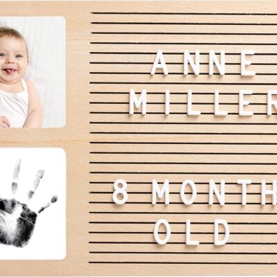Pearhead Babyprints Letterboard Photo Frame, Inkless Baby Handprint & Footprint Kit Included, Wooden Customizable Letterboard for Baby, New Baby Announcement Keepsake