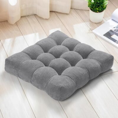 Millsilo 22 inch Floor Pillow, Large Floor Cushions, Square Floor Cushion Seating for Adults Kids, 4 Inch Thick Tufted Meditation Cushion for Yoga Living Room Tatami Floor, 22x22x4 Inch,Blue Gray