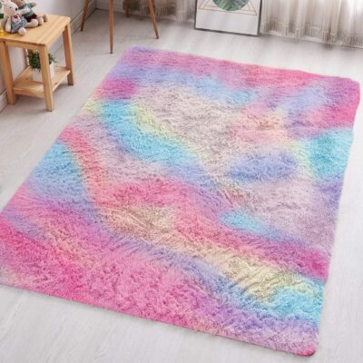 Aspire Homeware Rugs Living Room – Rainbow Area Rugs for Bedroom (80x150cm) Anti Slip – Modern Super Soft Thick Pile Fluffy Shaggy Rug Non Shedding