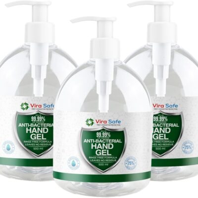 3x Vira Safe 500ml Hand Sanitiser Antibacterial Gel Certified Kills 99% Germs Fast Drying Moisturising Formula