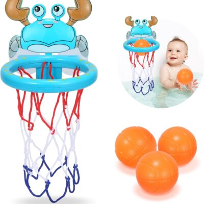 Bath Toys, Bathtub Basketball Hoop for Kids Toddlers – New Upgraded Strong Suction Cup Basketball Hoop with 3 Balls Set, Bath Toys Shower Toys Gifts for 1-8 Year Old Boys Girls Kids (Crab-blue)