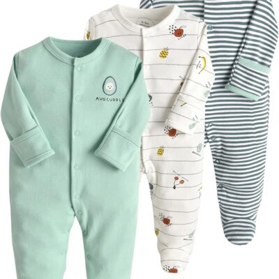 amropi Baby Girls Rompers 3-Pack Footies Long Sleeve Jumpsuit Cotton One-Piece Outfits for 0-12 Months