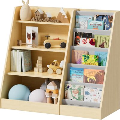 Yornoli Kids Bookshelf Wooden Childrens Bookcase Kids Storage Units Toy Storage Kids Shelves for Bedroom 4 Tier Bookshelf Burlywood