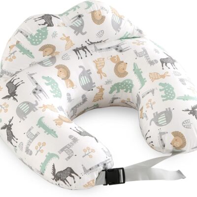 PASUKTER Nursing Pillow, Pregnancy Pillow, Multifunctional Breastfeeding Pillow with Adjustable Waist Belt and Safety Raised Fence, 100% Cotton Cover (Animal World)