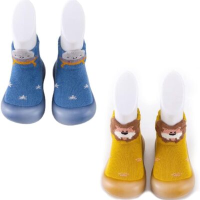 XM-Amigo 2 Pairs Unisex Baby Boys Girls First Walking Shoes Indoo Outdoor Walking Anti-Slip Shoes Socks Slippers