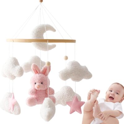 Crib Mobile for Girls | Bunny Nursery Mobile Baby Crib Decor,Children Room Bassinet Toy with 360° Rotation for Kids, Girls, Boys, Children