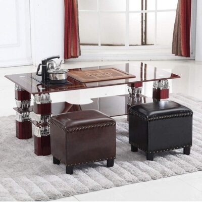GJVBGA Square Footrest Stool Ottoman,Leather Foot Rest Stool,Upholstered Footstool Pouf,Solid Wood Shoe Change Stool Seat for Living Room,Bedroom,Small Space(Size:M,Color:Black)