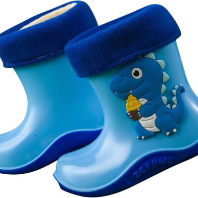 Toddler Winter Rain Boots Non Slip Insulated Waterproof Kids Snow Boots Non SlipDinosaurs Print Fleece Lined Cozy Insulated Boot for Boys Girls Kids Water Shoes