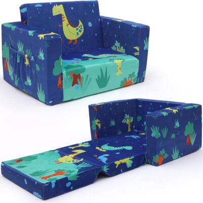 ACRABROS Kids Couch: Toddler Sofa Bed Fold Out for Gilrs Boys Baby Flip Out Convertible Lounge Chair Dinosaur