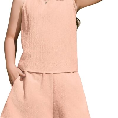 Arshiner Girls Toddler Summer Outfits Clothing Sets Short Casual Fashion Solid Color Tank Top and Shorts Sets Kids 2 Piece Clothing Set Beach Outfits 5-13 Years