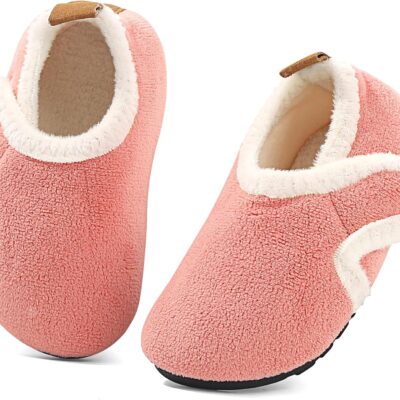 MASOCIO Kids Girls Boys Slippers Warm Plush Anti-Slip Toddler Children House Shoes