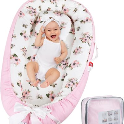 𝖡𝖺𝖻𝗒 Lounger for 𝖭𝖾𝗐𝖻𝗈𝗋𝗇-𝖭𝖾𝗐𝖻𝗈𝗋𝗇 Lounger for 0-12 𝖬𝗈𝗇𝗍𝗁𝗌, Breathable Portable 𝖨𝗇𝖿𝖺𝗇𝗍 Lounger-Soft 𝖡𝖺𝖻𝗒 Floor Seat for Travel, 𝖭𝖾𝗐𝖻𝗈𝗋𝗇 Essentials(Big flower)