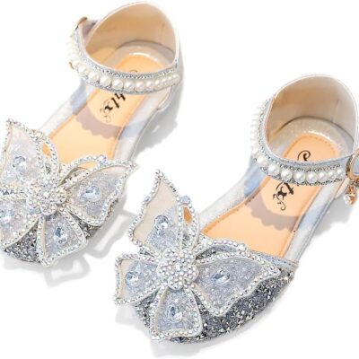 VTASQ Girl Sandals Glitter Princess Shoes Dress Up Bling Bowknot Flats Comfort Mary Jane Dance Party Cosplay Shoe for Little Girls