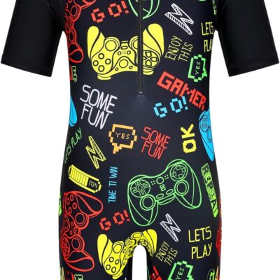 HUAANIUE Boys Swimming Short Sleeve Swimsuit 3-12Y Kids One Piece Swimwear Navy Sun Protection 50+ Swim Clothes UPF Warm Sportwear Costume Summer Surfing