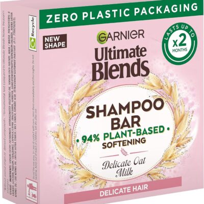 Garnier Ultimate Blends Delicate Oat Softening Shampoo Bar for Sensitive Scalp and Fragile Hair, Clear, 60 g (Pack of 1)