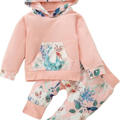 Xumplo Baby Girl Clothes Infant Baby Girls Outfits Toddler Long Sleeve Hoodie Top + Floral Pants Sweatsuit Clothing Set