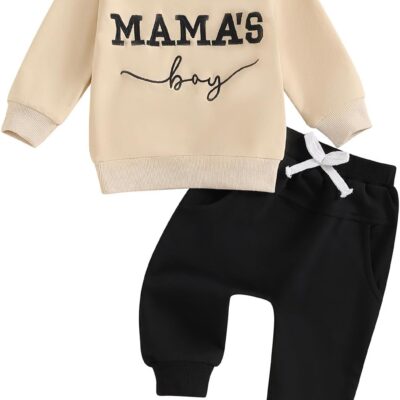 Loalirando Toddler Mama’s Boys 2PCS Pants Outfit Long Sleeve O Neck Letter Embroidery Sweatshirts Tops Drawstring Elastic Waist Sweatpants Fall Winter Clothes Set