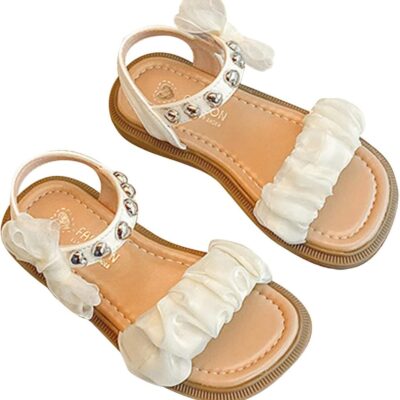 Jelly Flip Flops for Kids Girls Sandals Open Toe Mesh Design Sandals Bowknots Flat Sandals Summer Dress Shoes Kid Sandals for Girls (Beige, 2 Big Kids)