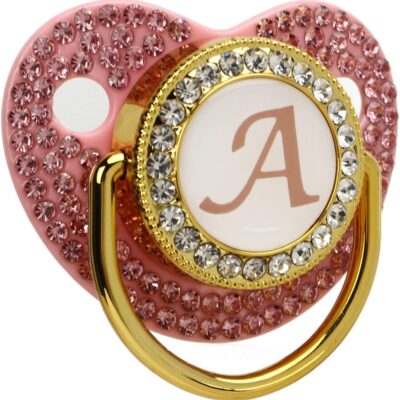 Golden Baby Pacifier, 26 Letters Personalized Pacifier Clip Set Covered Rhinestones Curved Design Baby Pacifier Baby Soother Silicone Pacifier for Baby Milk Powder Feeding (Letter A)