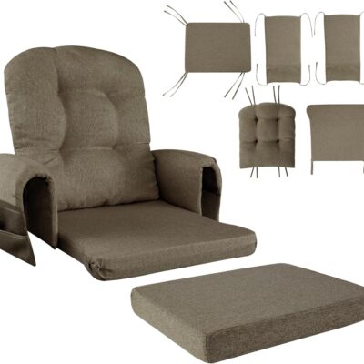 HOMBYS 5 PCS Glider Rocker Replacement Cushions with Storage Side Pocket,Linen-like Fabric, Foam & Microfiber Filling, Non-Slip & Washable,Thickened & Supportive for Glider Rocking Chair,coffee