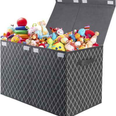 VERONLY Toy Storage Boxes for Boys Large Kids Chest, Foldable Fabric Storage Box Basket Organzier with lid and 2 handles for Toys,Books,Blankets,Clothes (Grey)