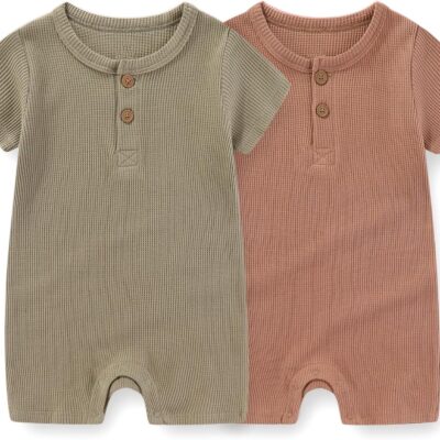 JELYLOVE Unisex Short Sleeve Baby Romper 2 Pack Cotton Solid infant Boy Girl Jumpsuits Soft New Born Clothes