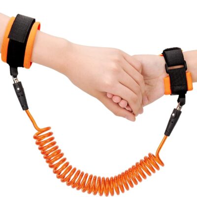 TOYESS 2.5M Anti Lost Wrist Link Belt, 360°Rotate Security Elastic Wire Rope for Baby and Toddler Reins, Safety Leash Wristband/Hand Harness for Walking and Travel Outside (Orange)