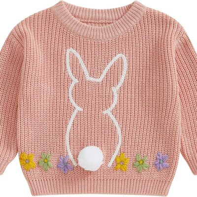 MAHUAOYIXI Toddler Baby Girl Warm Easter Sweater Bunny Embroidery Long Sleeve Knit Jumper Sweatshirt Knitted Pullovers Chunky Knitwear Easter Clothes Outfits for Little Boy