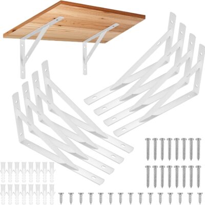 8 Pieces Shelf Brackets Heavy Duty, Wall Mounted Triangle Shelving Brackets, 90 Degree Right Angle Shelf Supporters Brace Brackets, for Living Room Bedroom (White 200x120mm/7.87×4.72 inch)