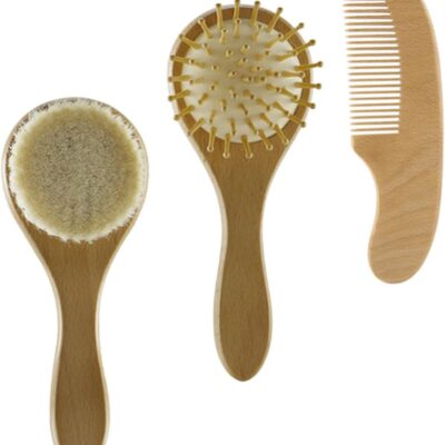 FELTECHELECTR Complete Baby Hair Care Kit 3PC Brush Comb Set for Newborns Soft Massager Gentle Cleaning Brush