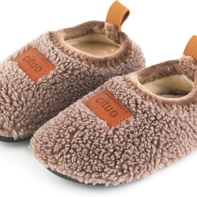 Sangyn Kids Fleece Slippers Toddler Boys Girls Winter Warm Fluffy Shoes Anti-Slip Cozy Slippers For Indoor Outdoor Wear