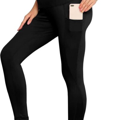 Risipu Women’s Maternity Workout Leggings Over The Belly Pregnancy Yoga Pants with Pockets Soft Activewear Workout Pants