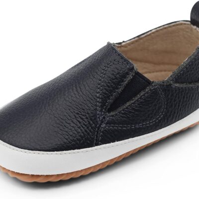 Dotty Fish Leather Infant Casual Shoes. Baby Boys Girls Slip-on Rubber Sole Trainers. First Walkers. Non-Slip Toddler Shoes (3-7 UK Child)