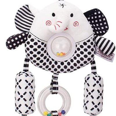 ECCHY Baby Stroller Hanging Toy, Pram Toys Hanging Plush Toys Travel Car Seat Toys with Teether and Wind Chimes, Black and White Toys for Babies Newborn 0-12 Months