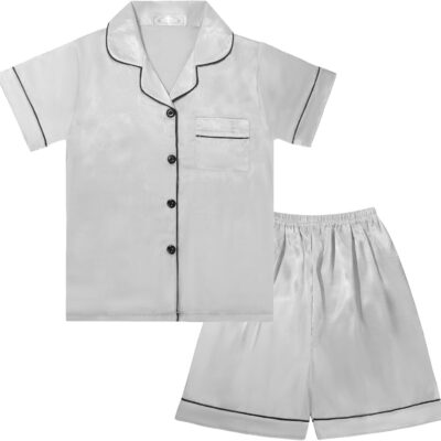 Risipu Silk Pyjamas Kids Set Unisex Short Sleeve Girls Pyjamas Solid Color for Kids