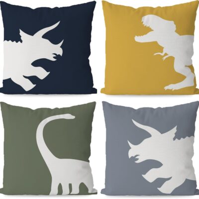 KEUSPI Cartoon Dinosaur Dino T-Rex Throw Pillow Covers,Dinosaur Throw Pillow Covers 18×18 Inch Set of 4,Home Boys Room Kids Room Playroom Nursery Decor,Dinosaur Lover Gifts for Boys Kids