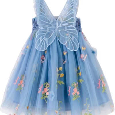 Miipat Baby Girl Dress Tulle Butterfly Toddler Girls Sleeveless Embroidery Floral Princess Dresses Wedding Party Birthday Dress for Girl