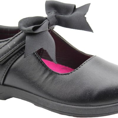 A2Z 4 Kids Girls Touch Fasten Black PU Shoe with Bow PU Leather Girls Back to School T Bar Flats Shoes Scuff Resistant School Sneakers Low Heal Ballet Flats Dress Party Wedding Loafers