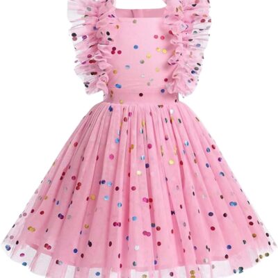 Trsenvrml Baby Girls Dresses for Kids Tutu Dress Little Girl Sequin Mesh Dress Ruffle Sleeveless Party Dress