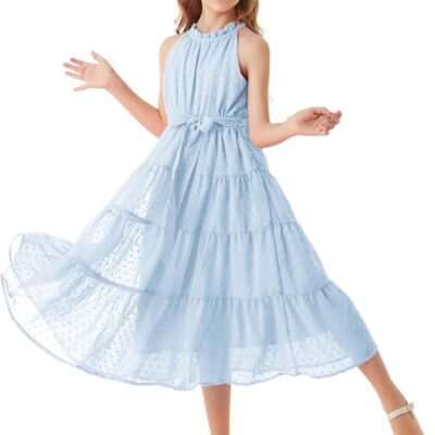GRACE KARIN Girls Summer Halter Neck Dress Swiss Dot Princess Party A-Line Maxi Dress