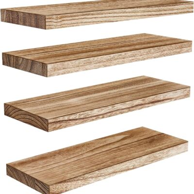 Pipishell Floating Shelves, 40cm Shelves for wall, Paulownia Wood Wall Shelves, Wooden Shelves Set of 4 for Bathroom, Bedroom, Office, Living Room, Kitchen,etc (light brown)