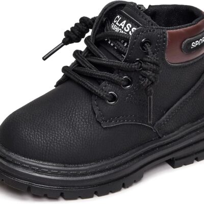 Ausing Boys Girls Combat Ankle Boots Lace up Fashion Walking Hiking Boots Winter Snow Boots for Kids Non-Slip Texture Sole